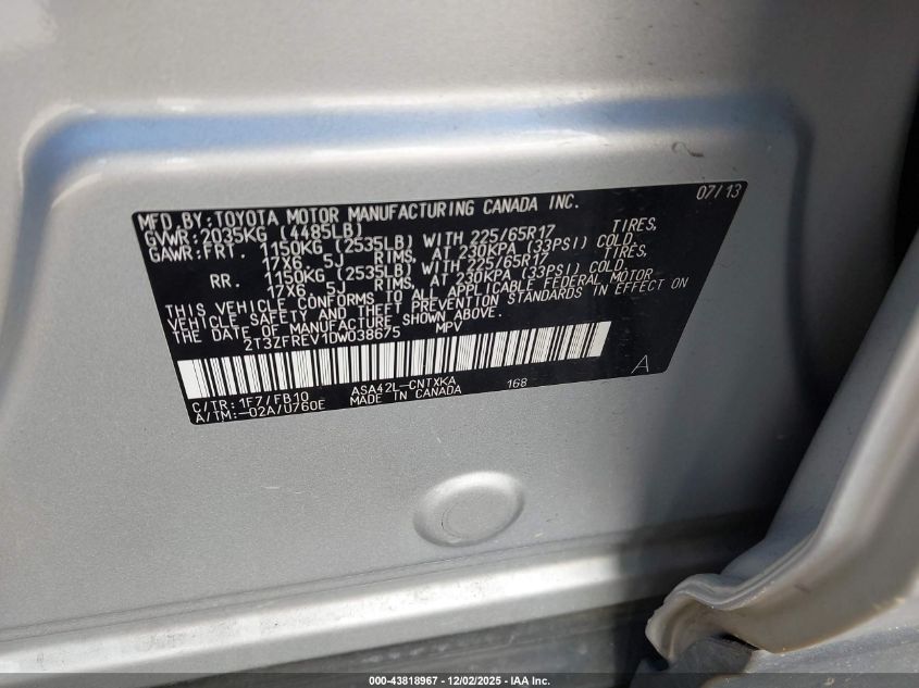 2013 TOYOTA RAV4 2013 року Бензин, 2.5, Передній привід, vin - 2T3ZFREV1DW038675 з США