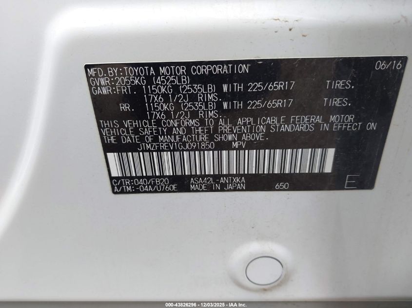 2016 TOYOTA RAV4 2016 року Бензин, 2.5, Передній привід, vin - JTMZFREV1GJ091850 з США