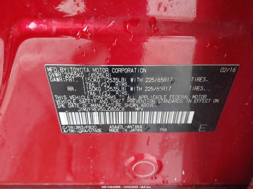 Колір ЧервонийЦиліндри 4Привід Передній привідVIN JTMZFREV5GJ080608Стан СтаціонарноУшкодження Передня або задня AutoRIA