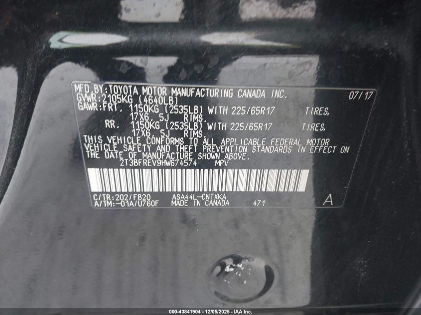 2017 TOYOTA RAV4 2017 року Бензин, 2.5, Повний привід, vin - 2T3BFREV9HW674574 з США