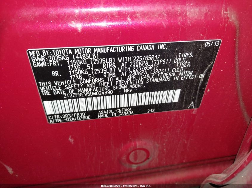 2013 TOYOTA RAV4 2013 року Бензин, 2.5, Передній привід, vin - 2T3ZFREV5DW024990 з США