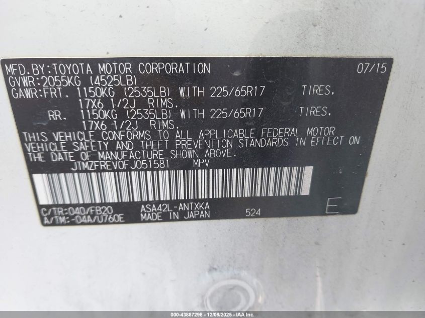 2015 TOYOTA RAV4 2015 року Бензин, 2.5, Передній привід, vin - JTMZFREV0FJ051581 з США