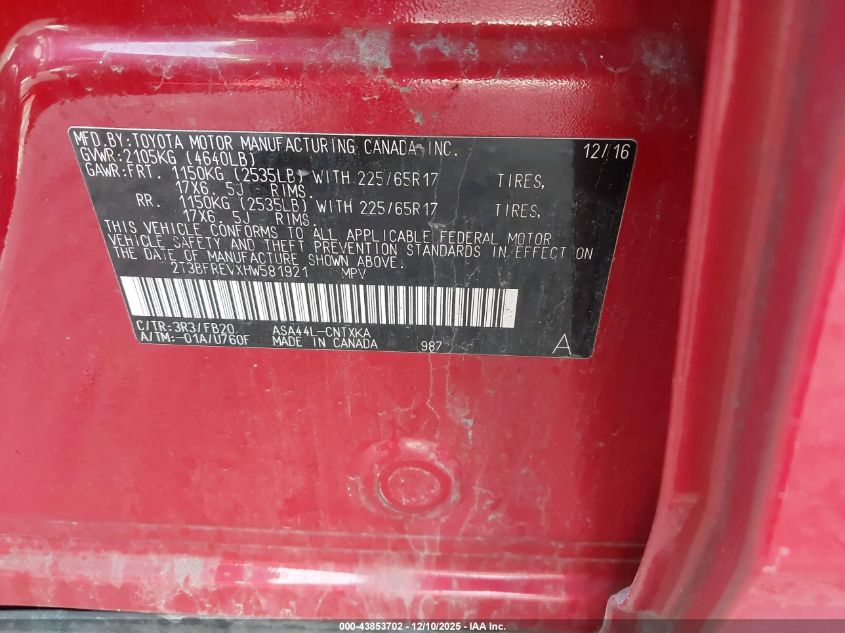 2017 TOYOTA RAV4 2017 року Бензин, 2.5, Повний привід, vin - 2T3BFREVXHW581921 з США