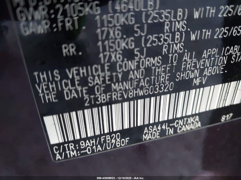 2017 TOYOTA RAV4 2017 року Бензин, 2.5, Повний привід, vin - 2T3BFREV8HW603320 з США