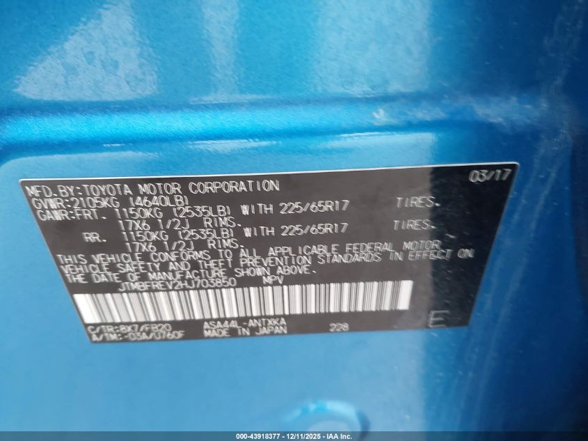 2017 TOYOTA RAV4 2017 року Бензин, 2.5, Повний привід, vin - JTMBFREV2HJ703850 з США