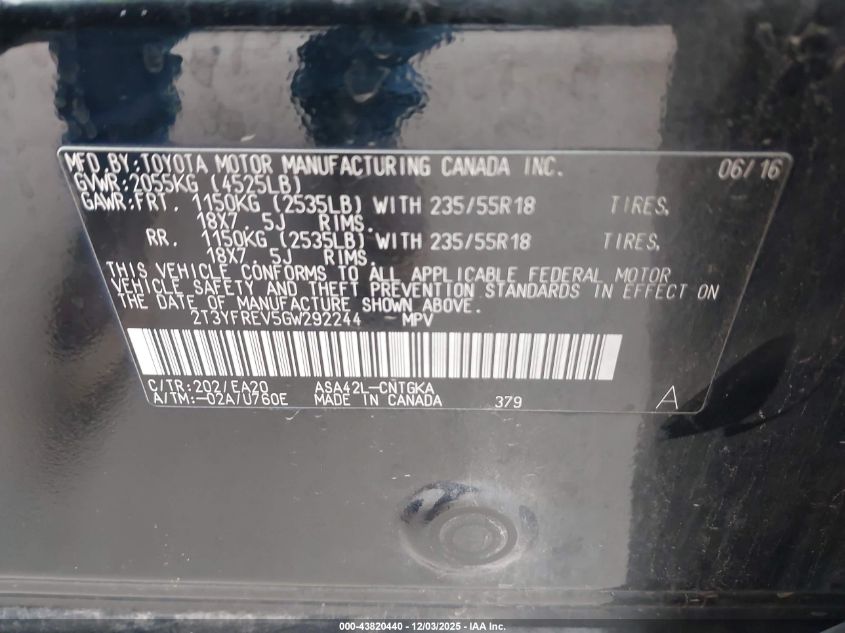 2016 TOYOTA RAV4 2016 року Бензин, 2.5, Передній привід, vin - 2T3YFREV5GW292244 з США