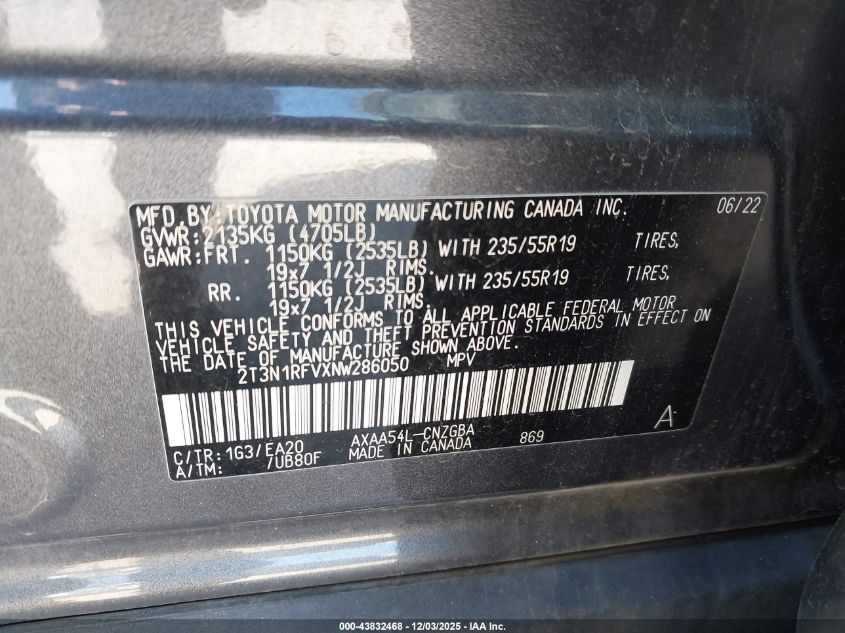 2022 TOYOTA RAV4 2022 року Бензин, 2.5, Повний привід, vin - 2T3N1RFVXNW286050 з США