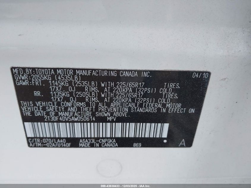 2010 TOYOTA RAV4 2010 року Бензин, 2.5, Повний привід, vin - 2T3DF4DV5AW050614 з США