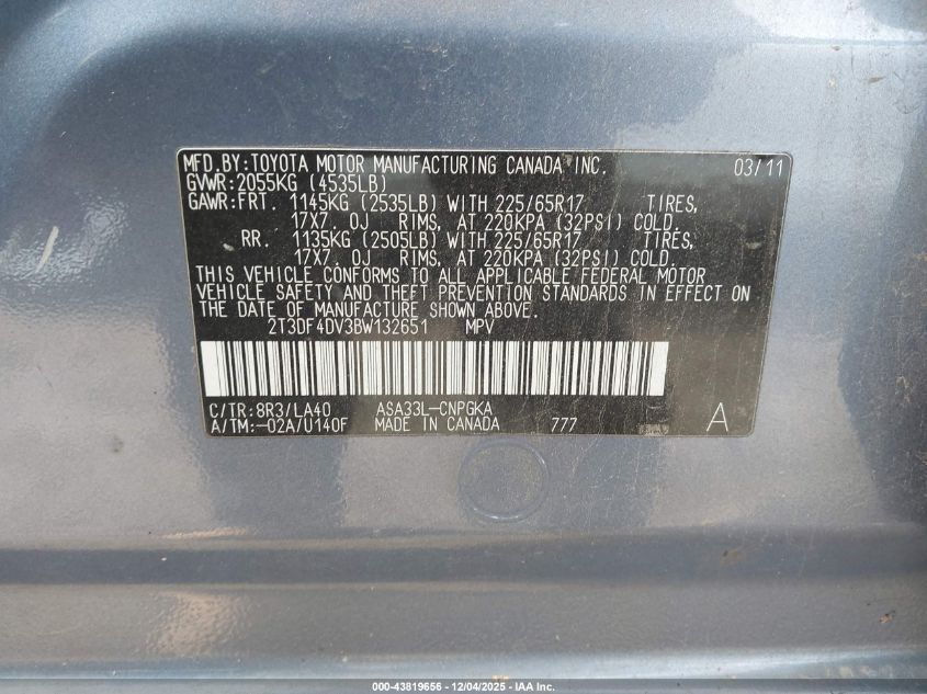 2011 TOYOTA RAV4 2011 року Бензин, 2.5, Повний привід, vin - 2T3DF4DV3BW132651 з США