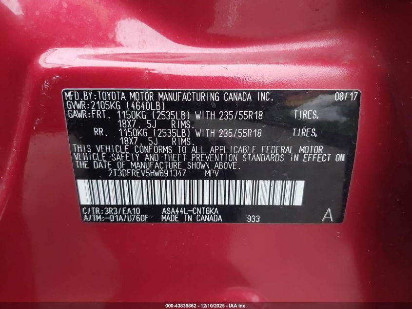 2017 TOYOTA RAV4 2017 року Бензин, 2.5, Повний привід, vin - 2T3DFREV5HW691347 з США