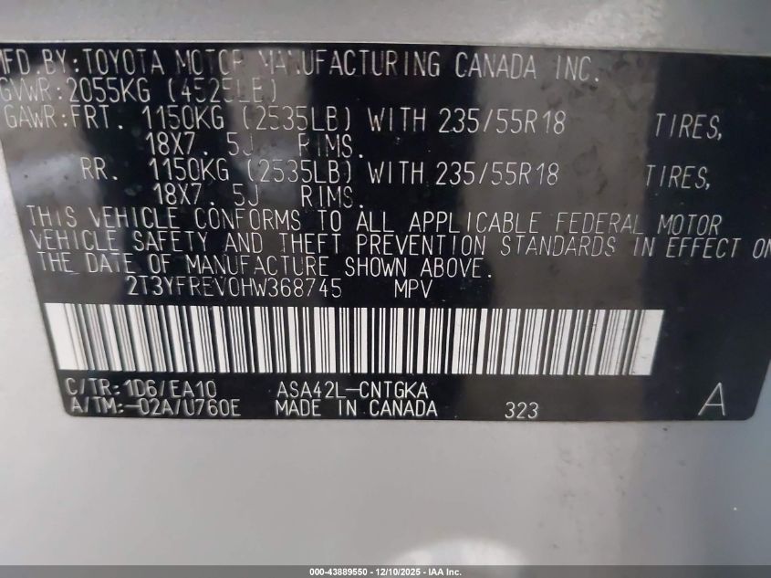 2017 TOYOTA RAV4 2017 року Бензин, 2.5, Передній привід, vin - 2T3YFREV0HW368745 з США
