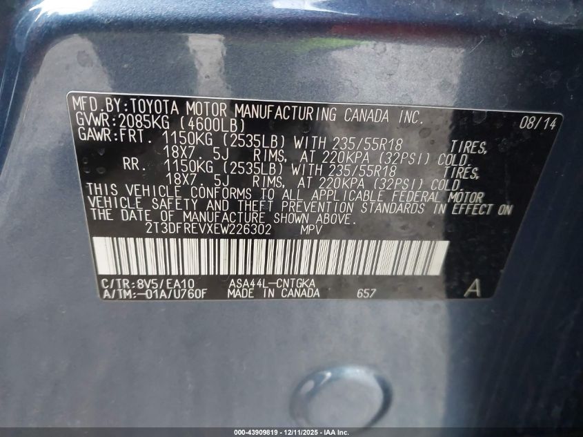 2014 TOYOTA RAV4 2014 року Бензин, 2.5, Повний привід, vin - 2T3DFREVXEW226302 з США