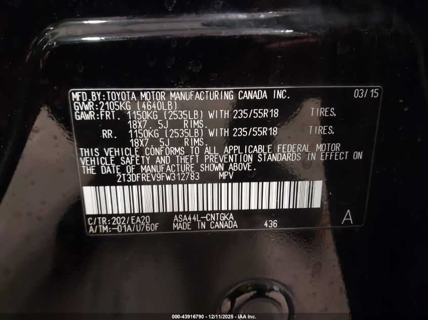 2015 TOYOTA RAV4 2015 року Бензин, 2.5, Повний привід, vin - 2T3DFREV9FW312783 з США