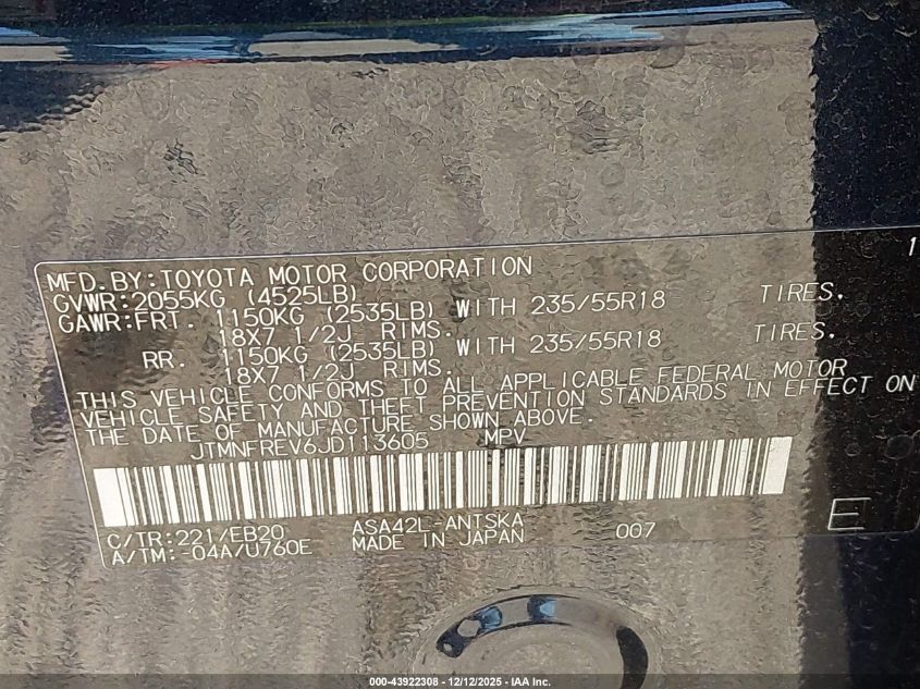 2018 TOYOTA RAV4 2018 року Бензин, 2.5, Передній привід, vin - JTMNFREV6JD113605 з США