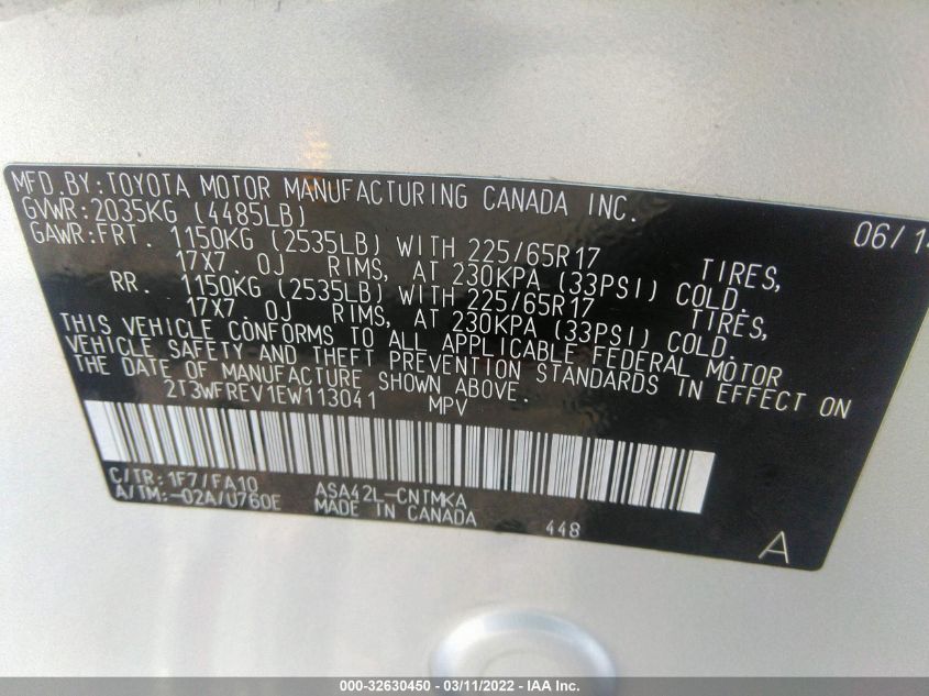 2014 TOYOTA RAV4 2014 року Бензин, 2.5, Передній привід, vin - 2T3WFREV1EW113041 з США