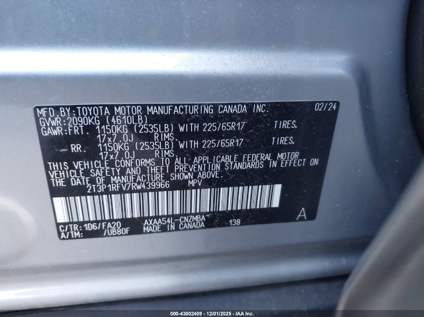 2024 TOYOTA RAV4 2024 року Бензин, 2.5, Повний привід, vin - 2T3P1RFV7RW439966 з США