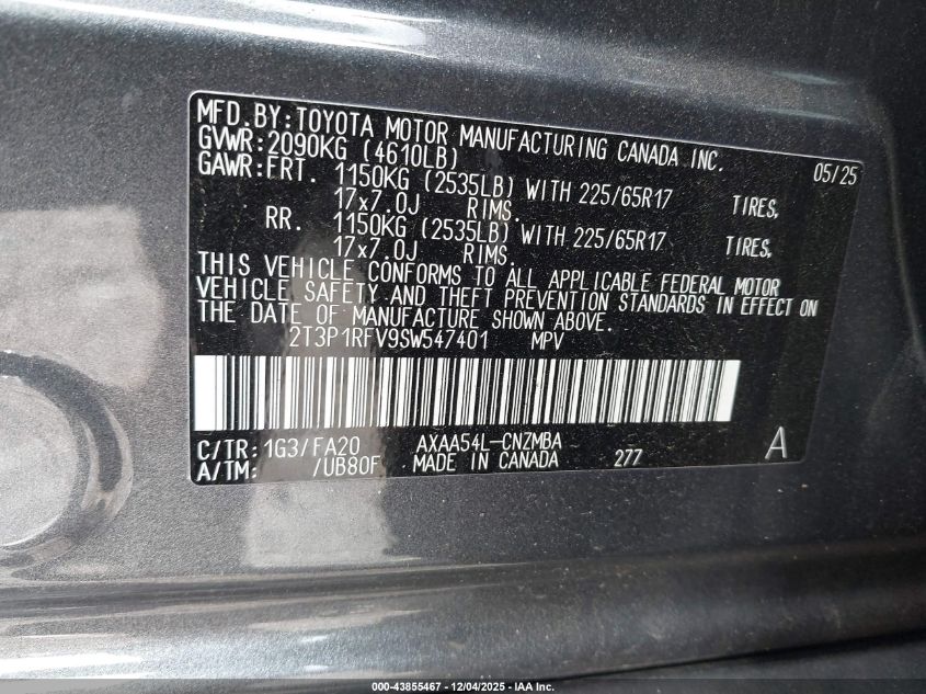 2025 TOYOTA RAV4 2025 року Бензин, 2.5, Повний привід, vin - 2T3P1RFV9SW547401 з США
