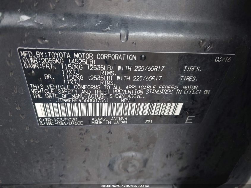 2016 TOYOTA RAV4 2016 року Бензин, 2.5, Передній привід, vin - JTMWFREV5GD087561 з США