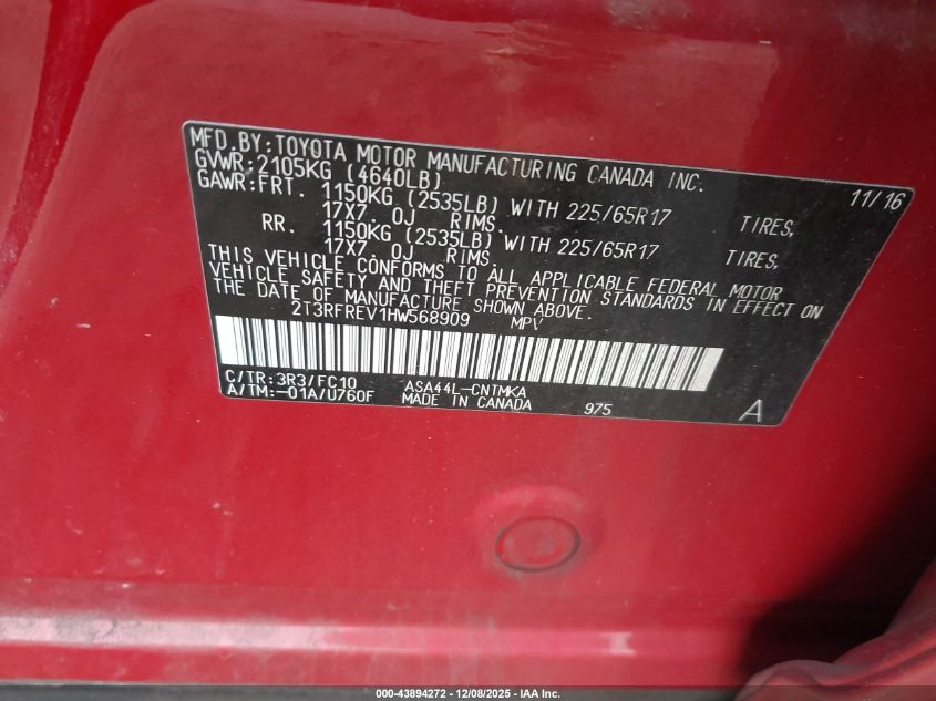 2017 TOYOTA RAV4 2017 року Бензин, 2.5, Повний привід, vin - 2T3RFREV1HW568909 з США
