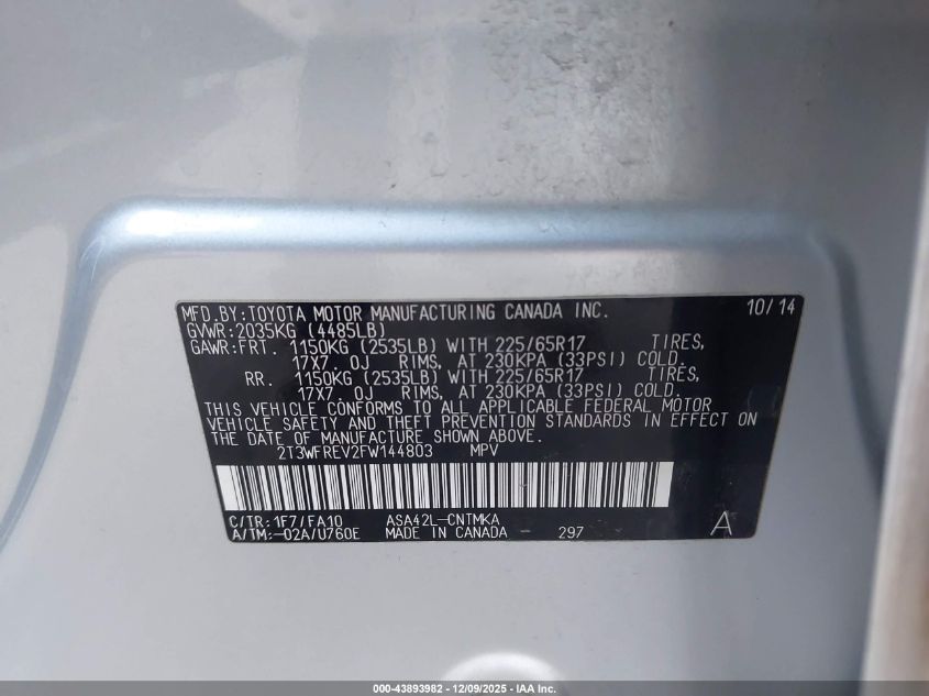 2015 TOYOTA RAV4 2015 року Бензин, 2.5, Передній привід, vin - 2T3WFREV2FW144803 з США