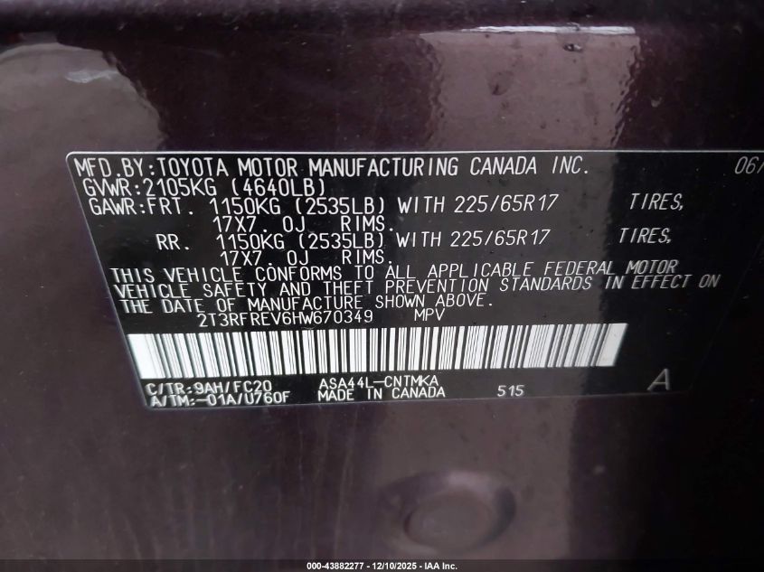 2017 TOYOTA RAV4 2017 року Бензин, 2.5, Повний привід, vin - 2T3RFREV6HW670349 з США