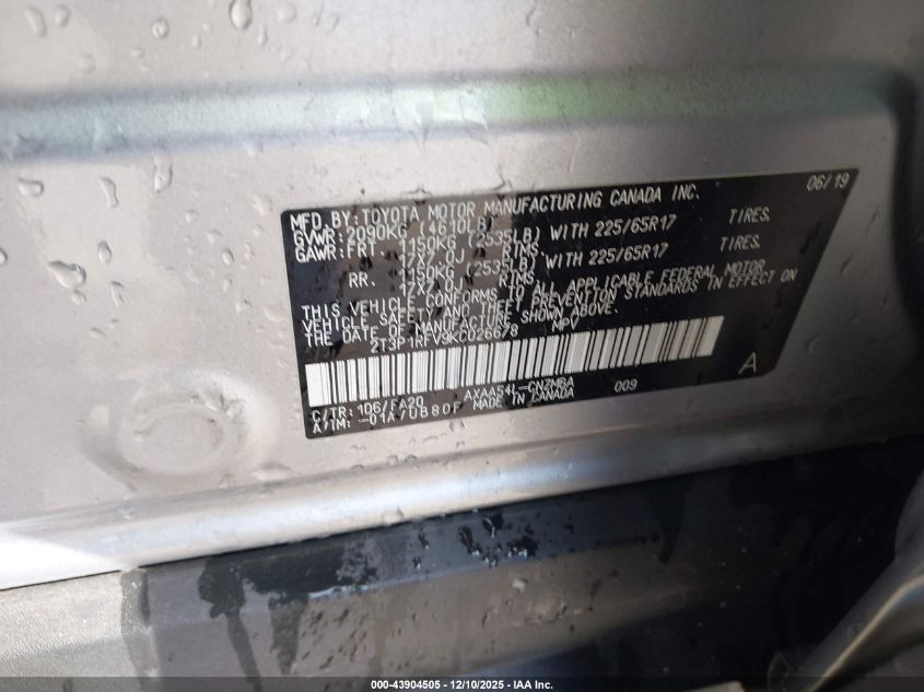 2019 TOYOTA RAV4 2019 року Бензин, 2.5, Повний привід, vin - 2T3P1RFV9KC026678 з США