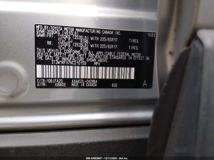 2022 TOYOTA RAV4 2022 року Бензин, 2.5, Передній привід, vin - 2T3W1RFV7NC210159 з США