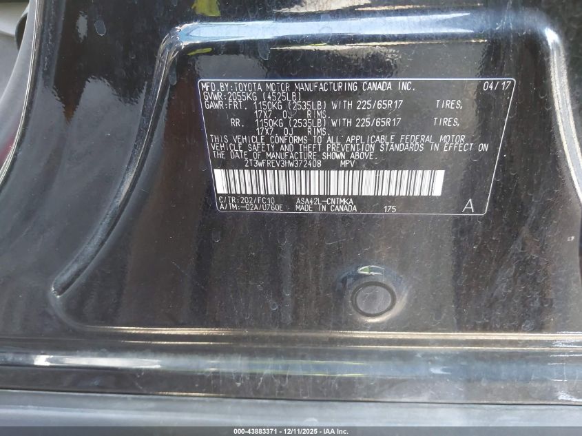 2017 TOYOTA RAV4 2017 року Бензин, 2.5, Передній привід, vin - 2T3WFREV3HW372408 з США