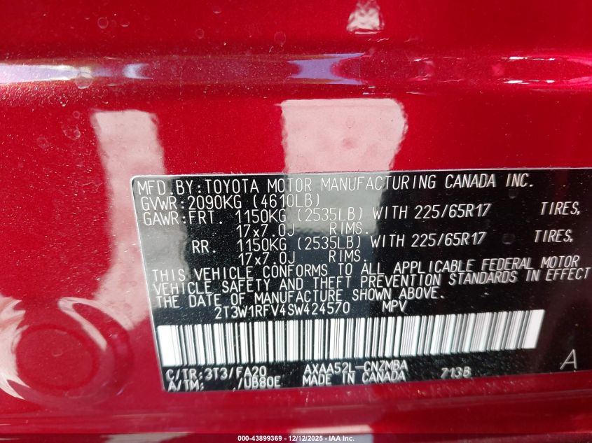 2025 TOYOTA RAV4 2025 року Бензин, 2.5, Передній привід, vin - 2T3W1RFV4SW424570 з США