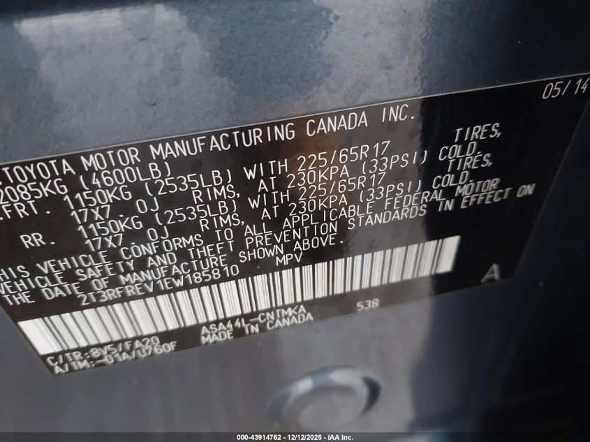 2014 TOYOTA RAV4 2014 року Бензин, 2.5, Повний привід, vin - 2T3RFREV1EW185810 з США