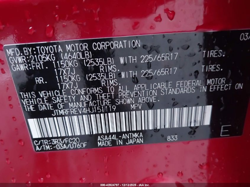 Колір ЧервонийЦиліндри 4Привід Повний привідVIN JTMRFREV4HJ151119Стан СтаціонарноУшкодження Передня або задня AutoRIA