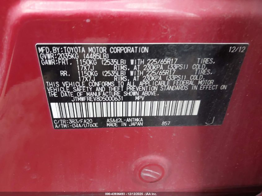 Колір ЧервонийЦиліндри 4Привід Передній привідVIN JTMWFREV8D5000631Стан Заводиться та їде (перевірено)Ушкодження Град AutoRIA