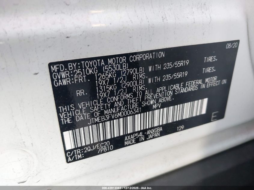 2021 TOYOTA RAV4 2021 року Гібрид, 2.5, Повний привід, vin - JTMEB3FV6MD006341 з США