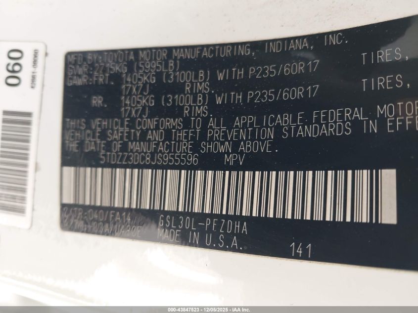 2018 TOYOTA SIENNA 2018 року Бензин, 3.5, Передній привід, vin - 5TDZZ3DC8JS955596 з США