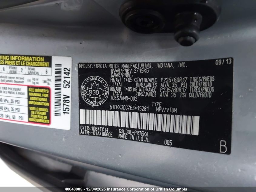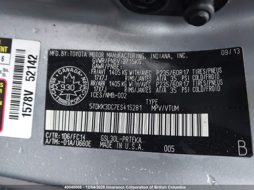 2014 TOYOTA SIENNA SPORT