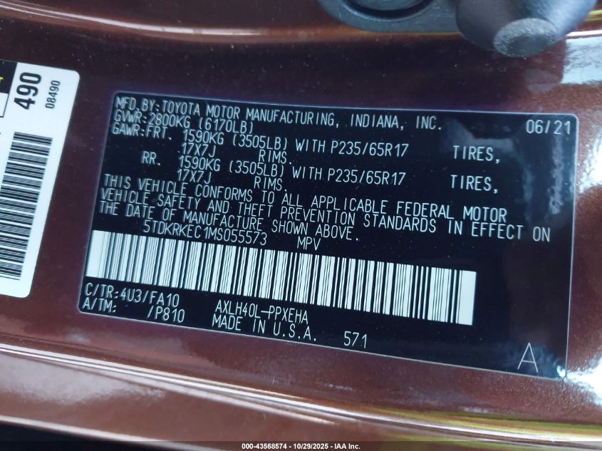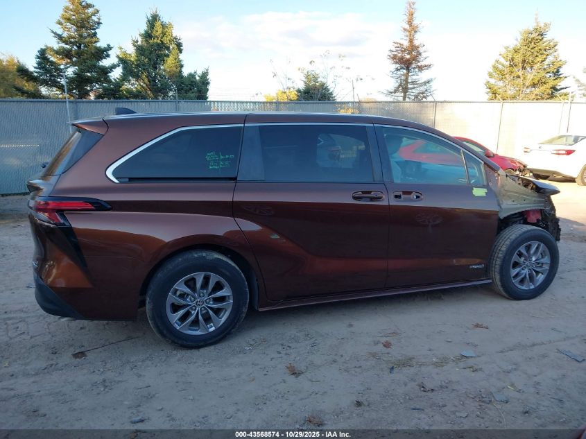 2021 TOYOTA SIENNA 2021 року Гібрид, 2.5, Передній привід, vin - 5TDKRKEC1MS055573 з США