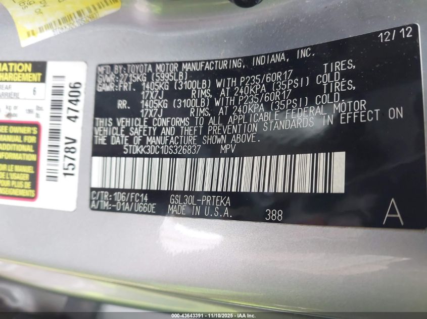 Колір СрібнийЦиліндри 6Привід Передній привідVIN 5TDKK3DC1DS326837Стан Заводиться та їде (перевірено)Ушкодження Ліва сторона AutoRIA