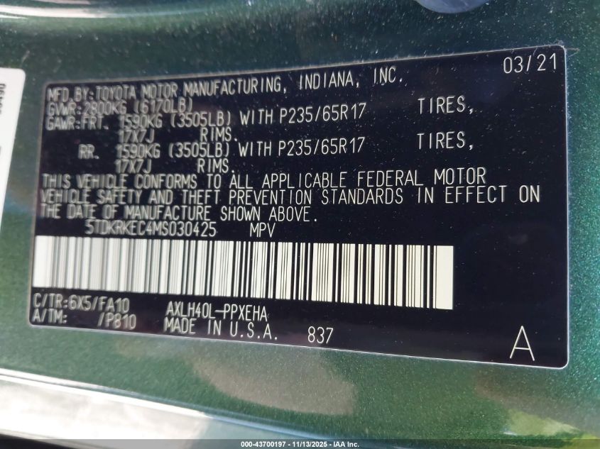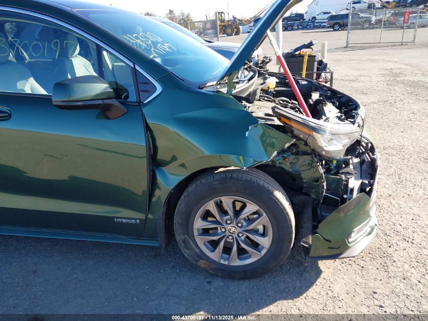 2021 TOYOTA SIENNA 2021 року Гібрид, 2.5, Передній привід, vin - 5TDKRKEC4MS030425 з США