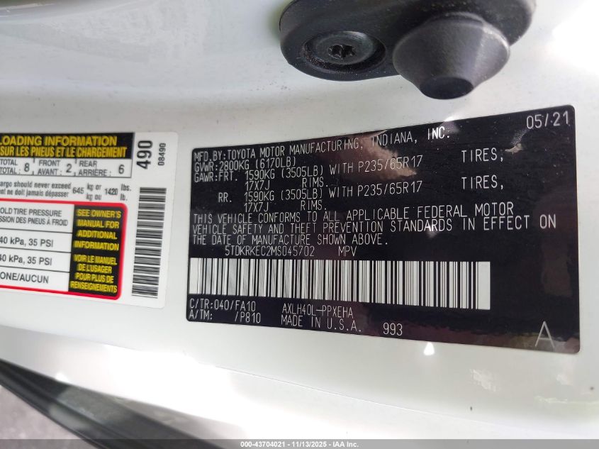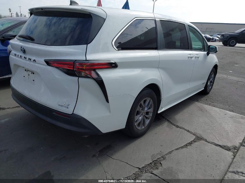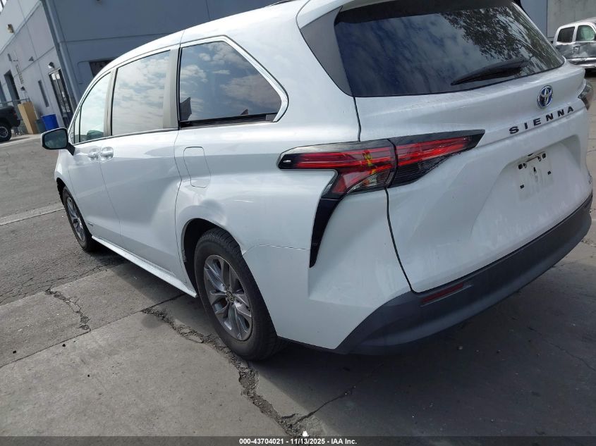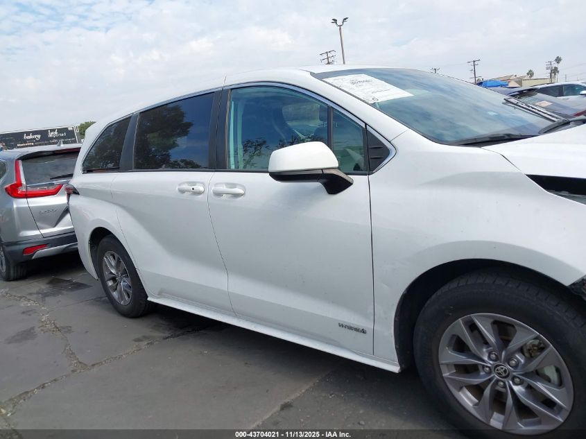 2021 TOYOTA SIENNA 2021 року Гібрид, 2.5, Передній привід, vin - 5TDKRKEC2MS045702 з США