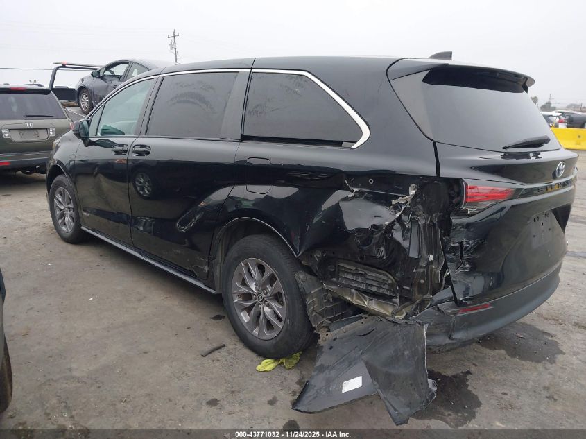 2021 TOYOTA SIENNA 2021 року Гібрид, 2.5, Передній привід, vin - 5TDKRKEC8MS009691 з США