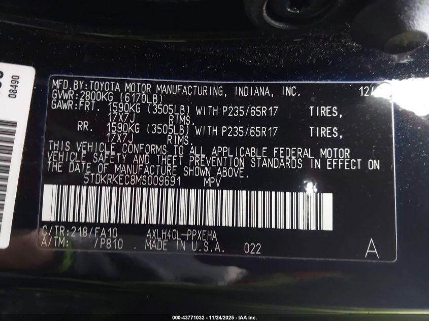 Колір ЧорнийЦиліндри 4Привід Передній привідVIN 5TDKRKEC8MS009691Стан СтаціонарноУшкодження Задня ліва AutoRIA