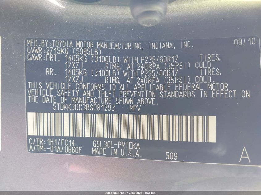 Колір СірийЦиліндри 6Привід Передній привідVIN 5TDKK3DC3BS081293Стан СтаціонарноУшкодження Передня або задня AutoRIA