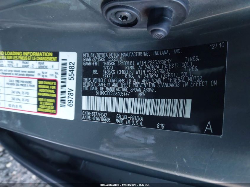 Колір СірийЦиліндри 6Привід Передній привідVIN 5TDKK3DC5BS105447Стан СтаціонарноУшкодження Передня і задня AutoRIA