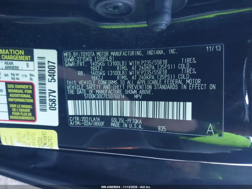 2014 TOYOTA SIENNA 2014 року Бензин, 3.5, Повний привід, vin - 5TDDK3DC7ES076014 з США