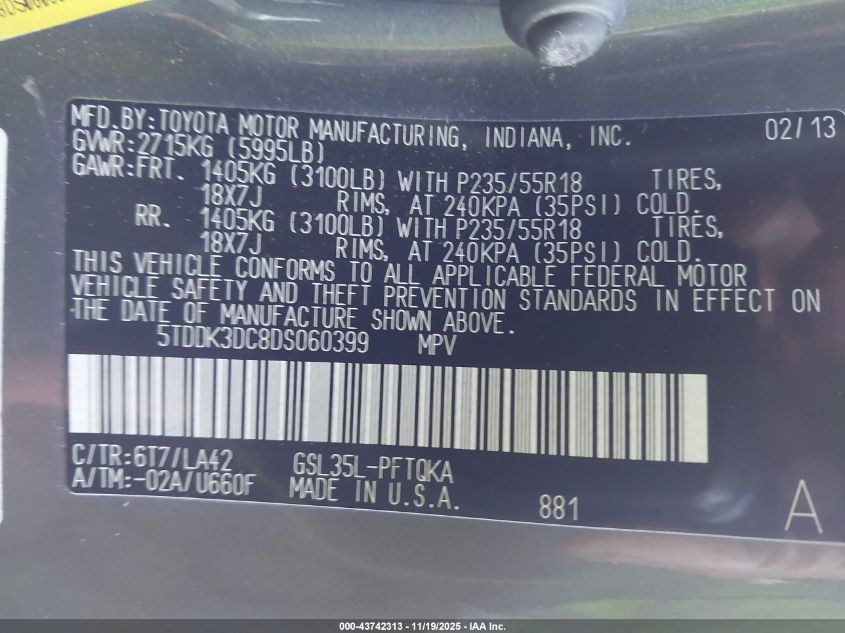 2013 TOYOTA SIENNA 2013 року Бензин, 3.5, Повний привід, vin - 5TDDK3DC8DS060399 з США