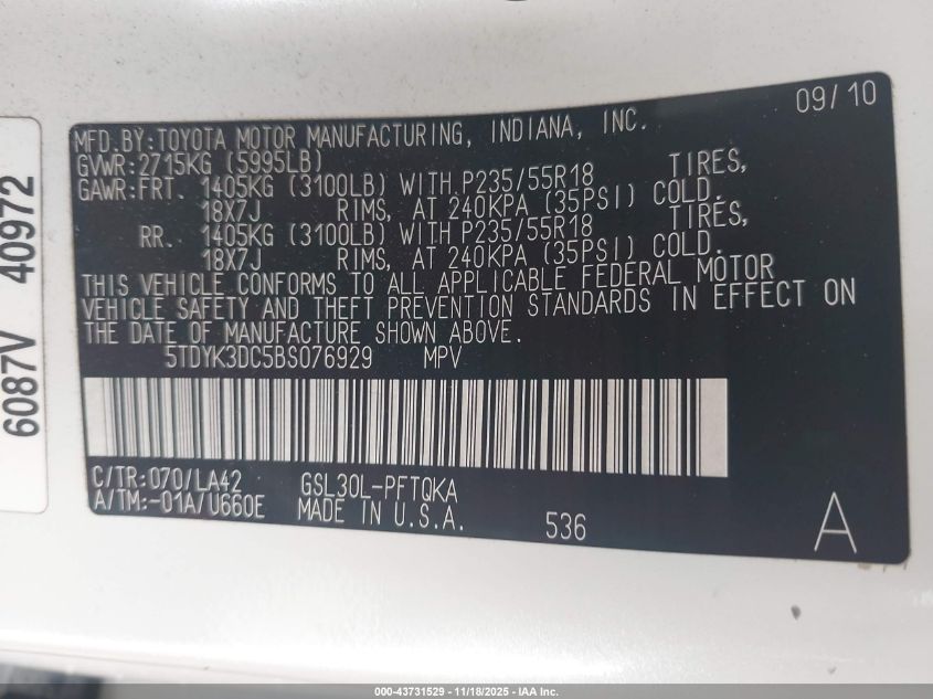 2011 TOYOTA SIENNA