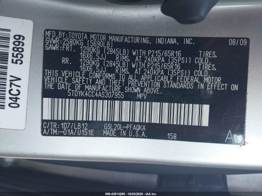 2010 TOYOTA SIENNA XLE