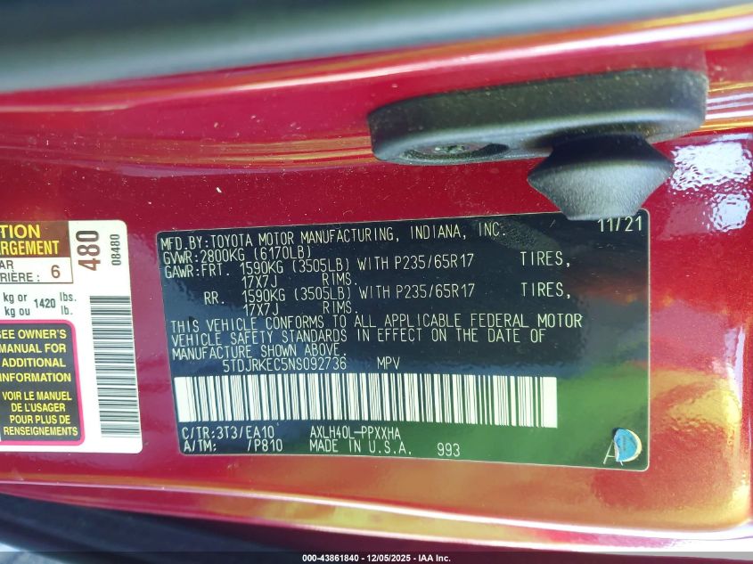 Колір ЧервонийЦиліндри 4Привід Передній привідVIN 5TDJRKEC5NS092736Стан СтаціонарноУшкодження Передня або задня AutoRIA