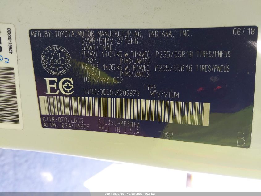 Колір БілийЦиліндри 6Привід Повний привідVIN 5TDDZ3DC9JS206879Стан Заводиться та їде (перевірено)Ушкодження Передня праваДата аукціону 2025-12-08 AutoRIA