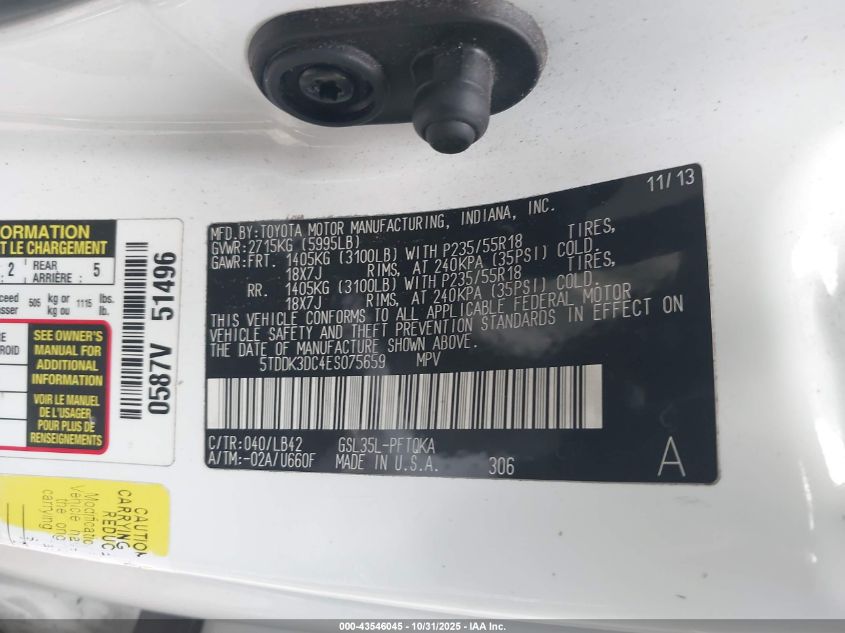 2014 TOYOTA SIENNA 2014 року Бензин, 3.5, Повний привід, vin - 5TDDK3DC4ES075659 з США